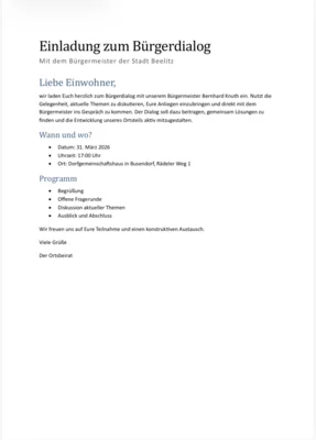 01.04.2026Frühstückstreff Lebenswer(t)k mit Vortrag SturzpräventionOT Kuhlowitz Gemeindehaus Preußnitz 30Das Angebot ist offen und richtet sich an Senioren jeden Alters, Menschen mit Pflegebedarf und deren An- und Zugehörige aus Bad Belzig und den Ortsteilen. Um vorherige Anmeldung bis zum 30. März ...