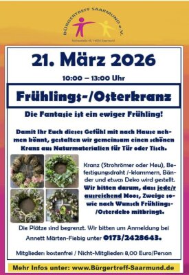 21.03.2026 bis 17.12.2026Treffen der Bürgerinitiative "Naturpark statt Windpark"Ökozentrum REETZ , Lindenplatz 1Die Treffen der Bürgerinitiative sind öffentlich. Jeder Interessierte Bürger ist herzlich willkommen. Die Treffen finden 14-tägigig immer am Donnerstag um 18:30 statt. Kontakt möglich über ...